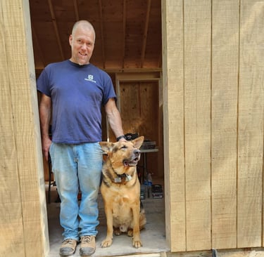 Our dog Ace is usually not far away while I’m working outside — whether I’m moving dirt with the tractor, cutting firewood, or tackling the next project on the property.